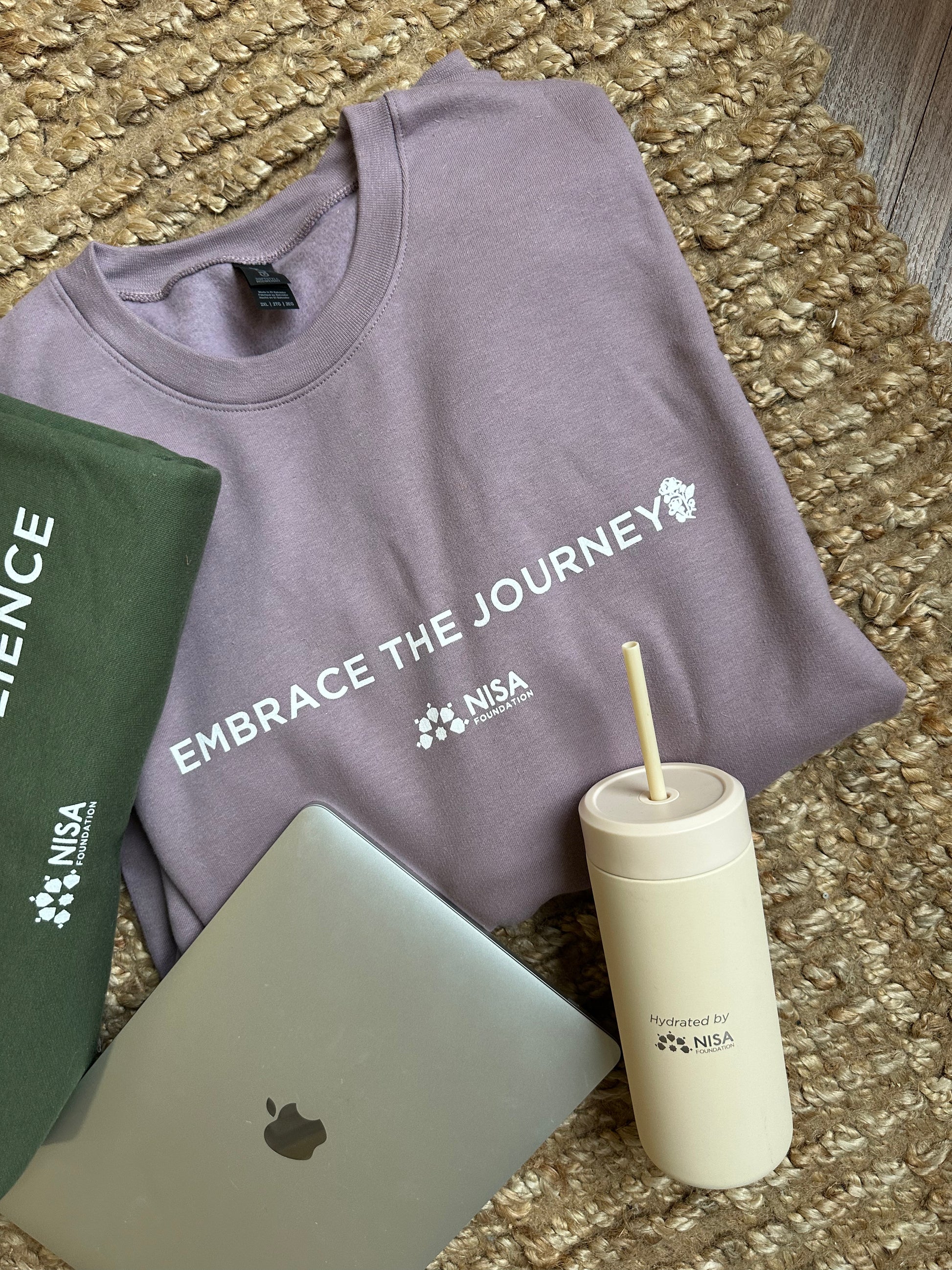 Take life one step at a time and Embrace the Journey. This fleece crewneck is perfect for those who appreciate a minimalist style. Let this cozy sweater remind you to always enjoy the ride. (Journey, step, and embrace puns not included)!